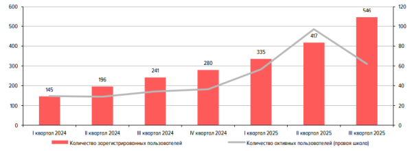 • 546 тыс. — зарегистрированных пользователей, 62 тыс. — активных (11% от базы).
