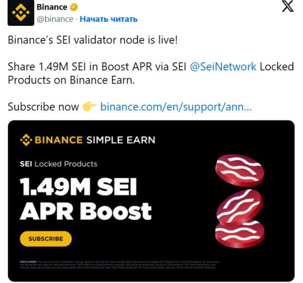 Binance станет одним из валидаторов в сети SEI, что должно повысить узнаваемость проекта. А сама криптобиржа получит выгоду от потенциального роста Sei.