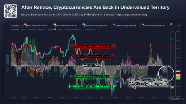 С точки зрения ончейн-метрик, Chainlink торгуется у относительно низкого 30-дневного уровня MVRV. Этот показатель сравнивает среднюю цену закупки держателей с текущим курсом. Когда он уходит в минус, большинство трейдеров фиксируют убытки, в результате давление продаж обычно снижается, а риски падения становятся ниже. Проще говоря, среди держателей LINK больше нет игроков, стремящихся забрать быструю прибыль.