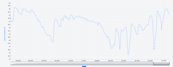 Тенденция к накоплению актива подтверждается данными о стейкинге. С четвертого квартала 2025 года доля заблокированных монет неуклонно растет. На данный момент в стейкинге находится более 10 млн DCR. Этот показатель составляет 62% от общего объема эмиссии и является максимальным с марта 2025 года.
