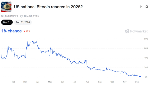 Ставки на создание национального резерва биткоинов в США в 2025 году 8 декабря. Источник: Polymarket