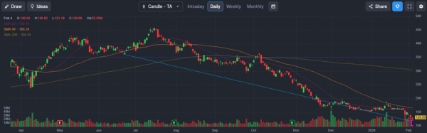 Стоимость акций Strategy от пиковых $457,22 в июле 2025 года рухнула на 71,2%, до $129,09 на закрытие 4 февраля.