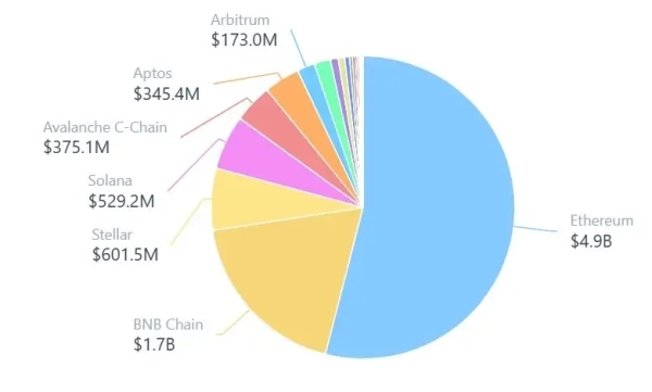 Ethereum остается ведущей сетью для токенизации казначейских облигаций США. По данным RWA.xyz, на момент публикации на блокчейне Ethereum было токенизировано более $4,9 млрд казначейских облигаций США.