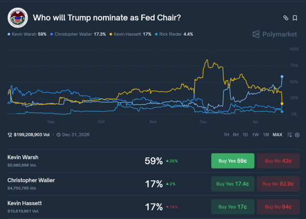 Кевин Варш усилил позиции на Polymarket. Источник: Polymarket