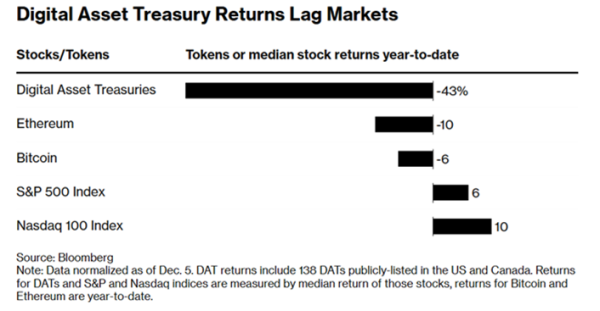 Для небольших безызвестных DAT возможности привлечения капитала становятся еще более ограниченными из-за снижения котировок криптовалют и ослабления энтузиазма инвесторов.